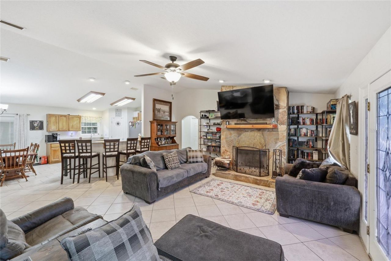 Welcome to this well-maintained 3-bedroom, 2-bathroom home nestled on a beautiful two-acre lot on a quiet street in Old Town, Florida. Offering 1,536 square feet of comfortable heated living space, this move-in ready home strikes the perfect balance between cozy country living and everyday functionality, all with no HOA fees.Inside, the home greets you with a warm and inviting living room anchored by a wood-burning fireplace, creating the perfect gathering space for family and friends. The kitchen is open with a pantry, stainless appliances with a gas stove, and large cabinets. There are vaulted ceilings throughout giving the home a spacious feel. The primary suite features a spacious bathroom with a soaking tub, separate walk-in shower, and double vanity, providing a true retreat at the end of the day. Custom cabinetry in closets gives the home the designer touch and many storage options. Outside, the two-acre property offers wide open green space, mature trees lining the perimeter, and plenty of room to spread out and enjoy the outdoors. A very large detached building provides valuable storage and workspace, adding more versatility for hobbies, equipment, or animals. With a private well, septic system, and a location that puts the quiet of rural Florida right at the doorstep while remaining accessible to surrounding communities, this property is an outstanding opportunity for buyers seeking space, value, and a place to truly call home.